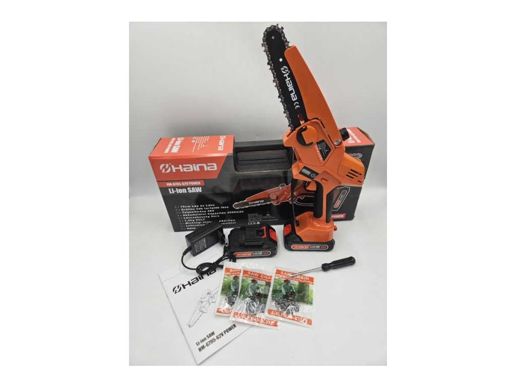 Mini akumulátorová píla Haina HM-6795 62v 1-koľajová, 4-reťazová,