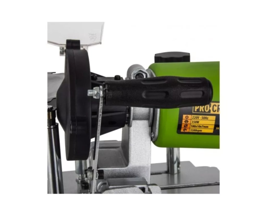 Ostrička pílových kotúčov Procraft SS350 je určená na rýchle a efektívne brúsenie a ostrenie všetkých bežne používaných typov kotúčov. Možnosť nastavenia uhla brúsenia zaisťuje perfektnú presnosť pri práci. Tichý motor s výkonom 110W a vysokých otáčok až 5300 zaručuje dlhú bezporuchovú prácu. Súčasťou dodávky je maticový a šesťhranný kľúč, keramický brúsny kotúč, rukoväť a ochranné sklo. Balenie kartón