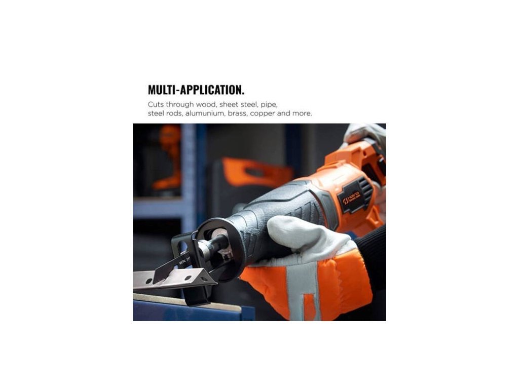 S výkonným 2500 W motorem od 0 do 2800 ot./min při volnoběhu a délce zdvihu 28 mm je řezání široké škály materiálů hračka – jako dřevo, ocelový plech, rury, ocebomosadové tyče