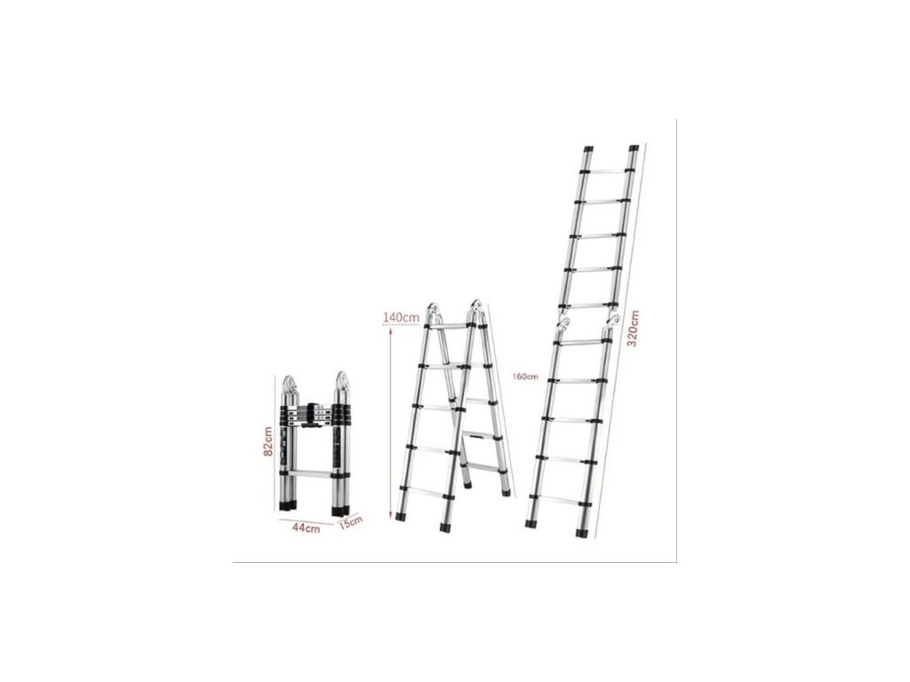 Haina HM-6518 Dvojitý teleskopický hliníkový rebrík 1,6 m + 1,6 m = 3,2 metra