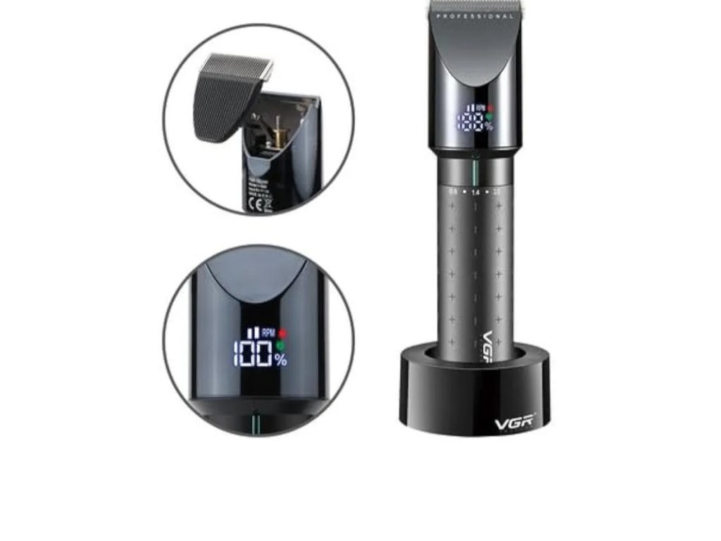 Nabíjateľný zastrihávač vlasov VGR V-698 s LED displejom a 4 nástavcami